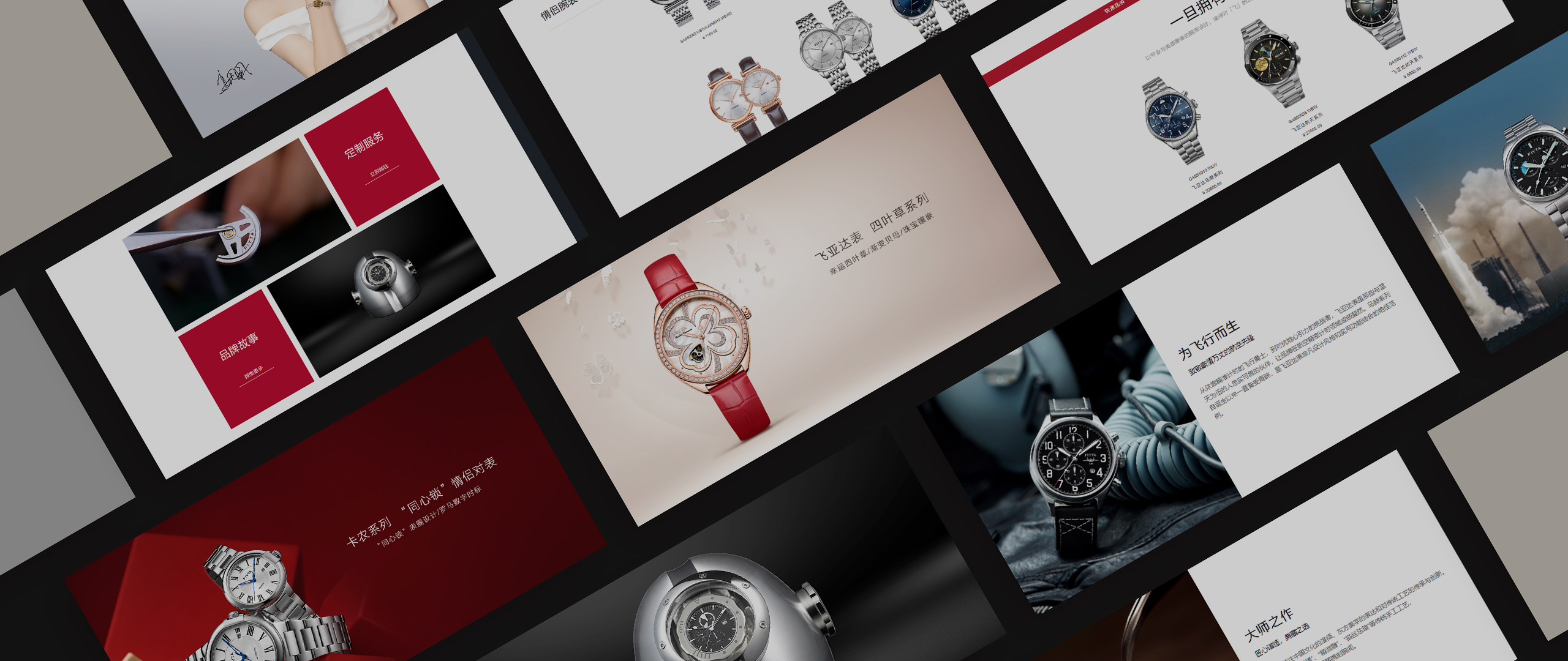 風格:輕奢精致風 + 科技感融合,以暗紅色、黑白暖黃為主調,搭配腕表細節(jié)實拍與航天元素,凸顯定制化質感;