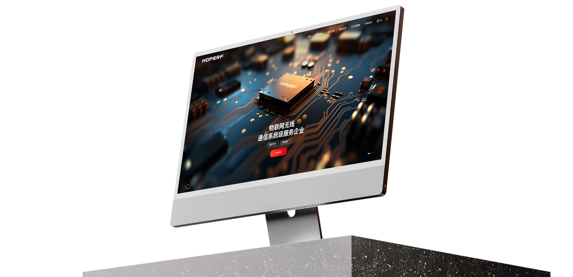 設計風格:沙漠風為華普微設計的網站采用極簡精密科技風,主要以品牌VI色的紅色+黑色、白色為主色調,來展示華普微品牌調性。